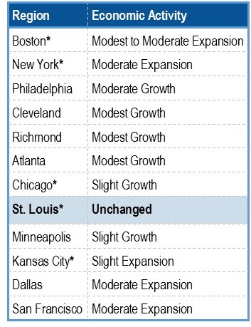 James Bullard, President of the Federal Reserve Bank of St. Louis, and a rotating voting member of the FOMC, was the lone dissenter. He would have preferred a quarter point rate cut at this juncture. While his reasoning was not made public, we went to the latest Beige Book (released June 5, 2019) for clues.