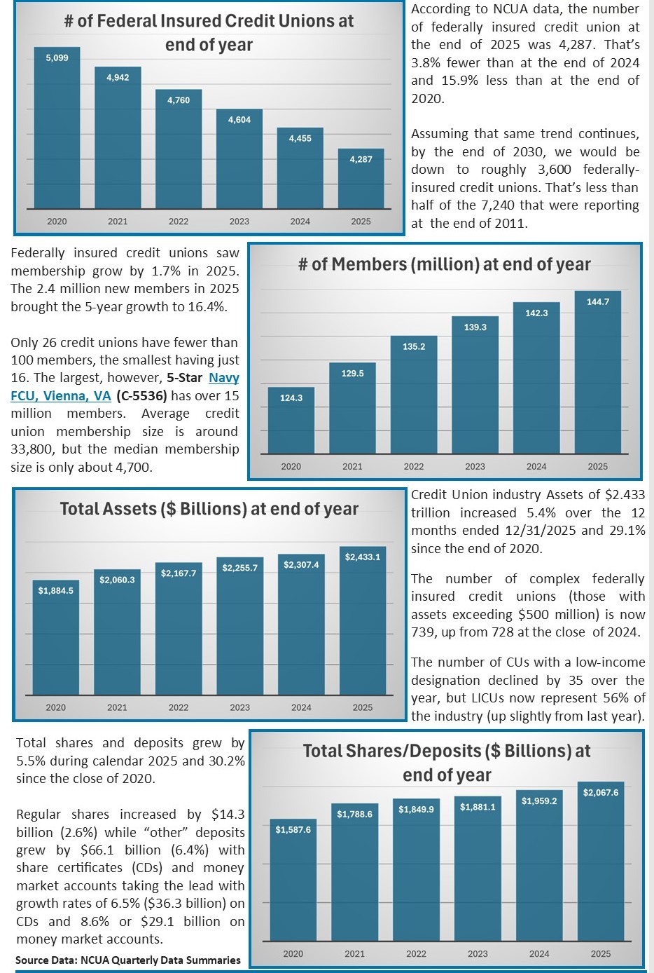 Star-Ratings based on fourth quarter 2025 financial data are now available for all federally insured credit unions as well as banks (released two weeks ago).