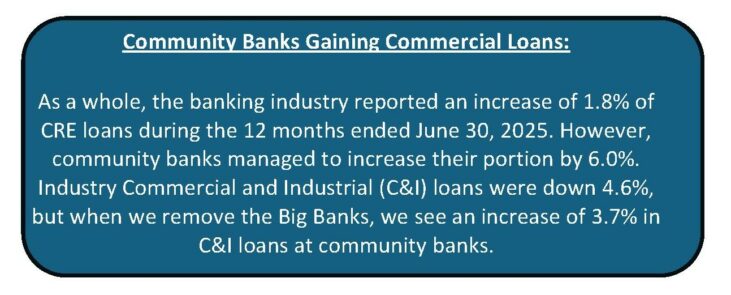 3½-Star BayFirst National Bank, St. Petersburg, FL (34997) serves as an example of how commercial loans can turn into a negative. BayFirst reported a net loss of $1.2 million for the first six months of 2025, at which time it also announced it was working on “derisking” its unguaranteed SBA (Small Business Administration) loans. In its case, charge-offs and fair value write-downs on these loans were blamed for those losses. That is certainly a risk in a changing rate environment.